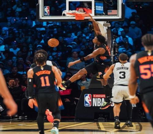 末节克拉克森两记三分命中,尼克斯打出8-0的开局,一举实现反超。2分58秒哈特三分命中,尼克斯115-107领先8分。哈珀三分追回到5分差距,随后阿努诺比的三分命中,让尼克斯再次取得8分优势。此后马刺接连进攻不中,科勒克连得4分,122-110尼克斯领先12分,马刺大势已去。最终全场比赛战罢,尼克斯124-113赢下胜利。
